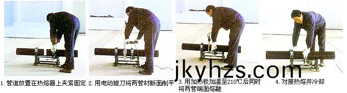 热熔对接是采用热熔对接焊机来加热管端(热熔对接温度为210+10℃),待管端熔化后,迅速将其贴合,保持一定的压力,经冷却达到熔接的目的。适用管径范围:dn≥90mm