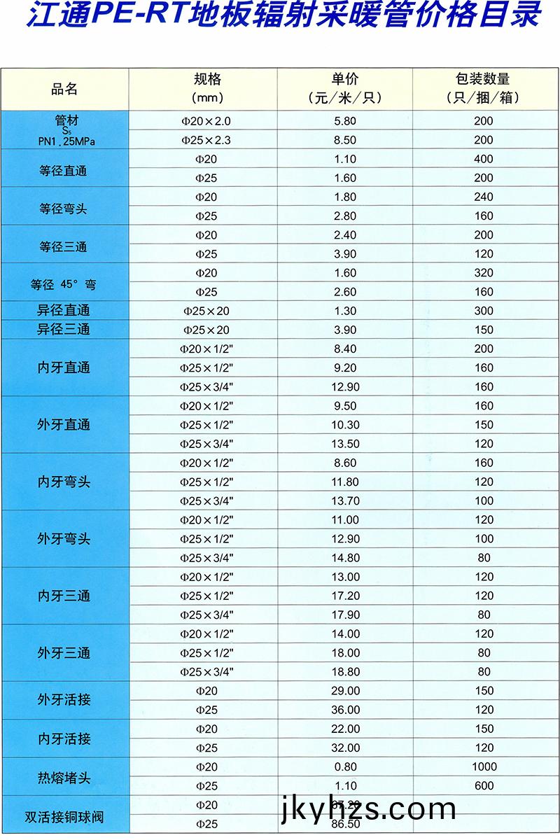 | 江通PE-RT地板辐 射采暖管价格目录 |